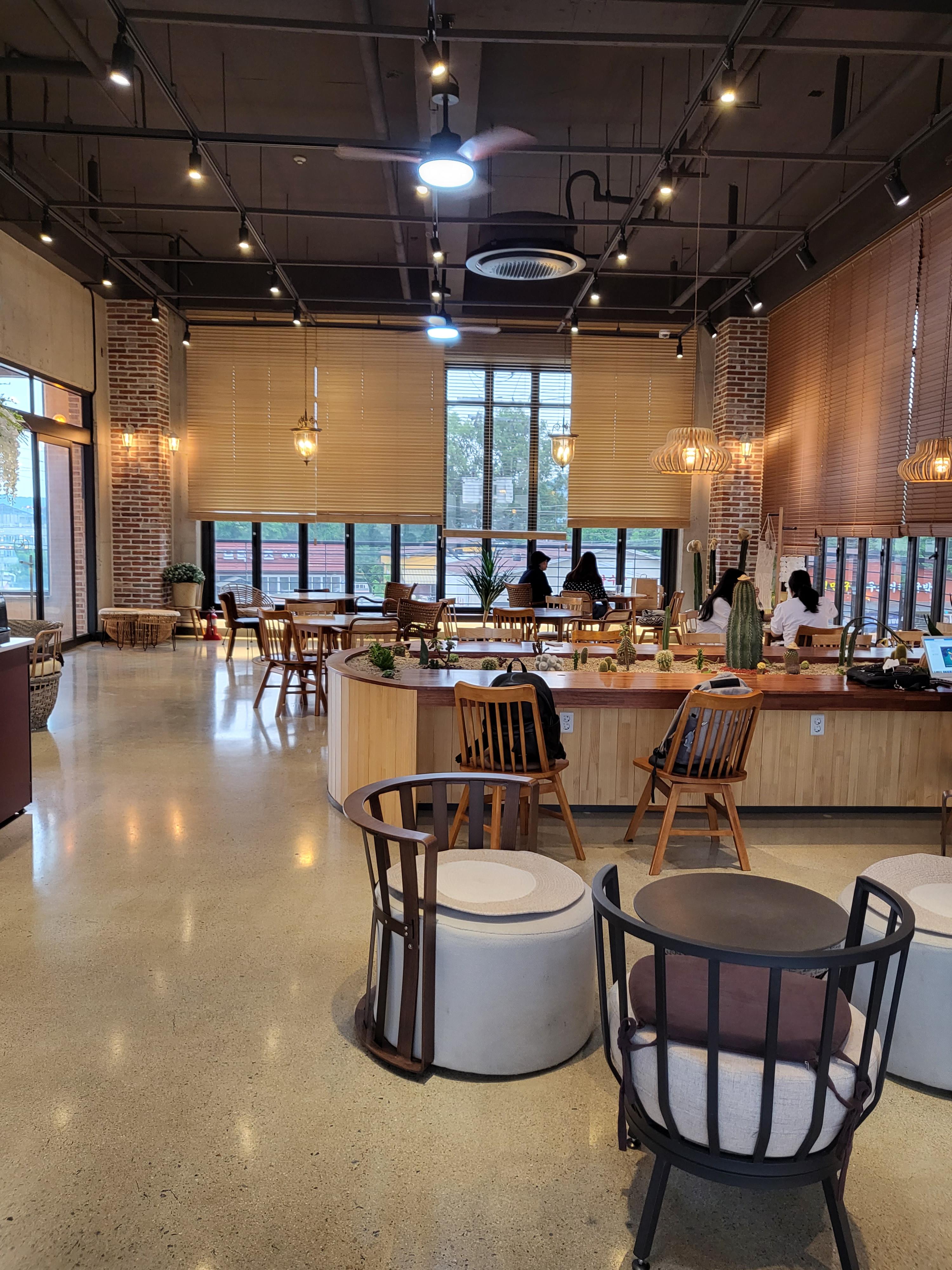 저도 구경하면서 자리 고르는데만도 엄청 시간이 걸렸는데, 메뉴 나오는 시간이 꽤 걸려서 1층에서 메뉴 먼저 고르시고 구경하고 자리 잡으시면 좋을 것 같더라고요.