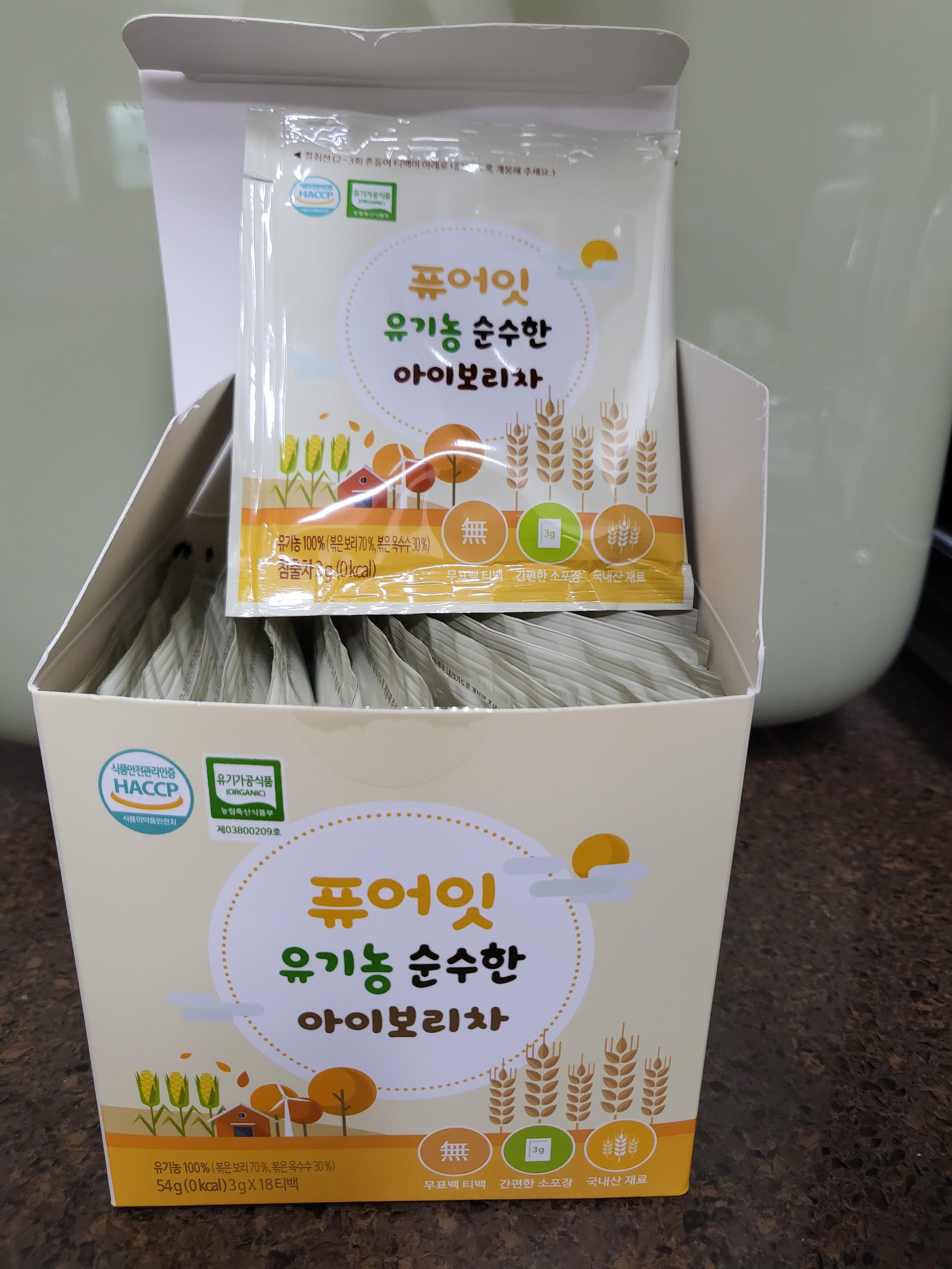 하물며 저희 집은 어른도 보리차를 끓여먹는지라, 두번 고민 하지 않고 퓨어잇 시리즈 아이보리차를 사서 먹였어요.