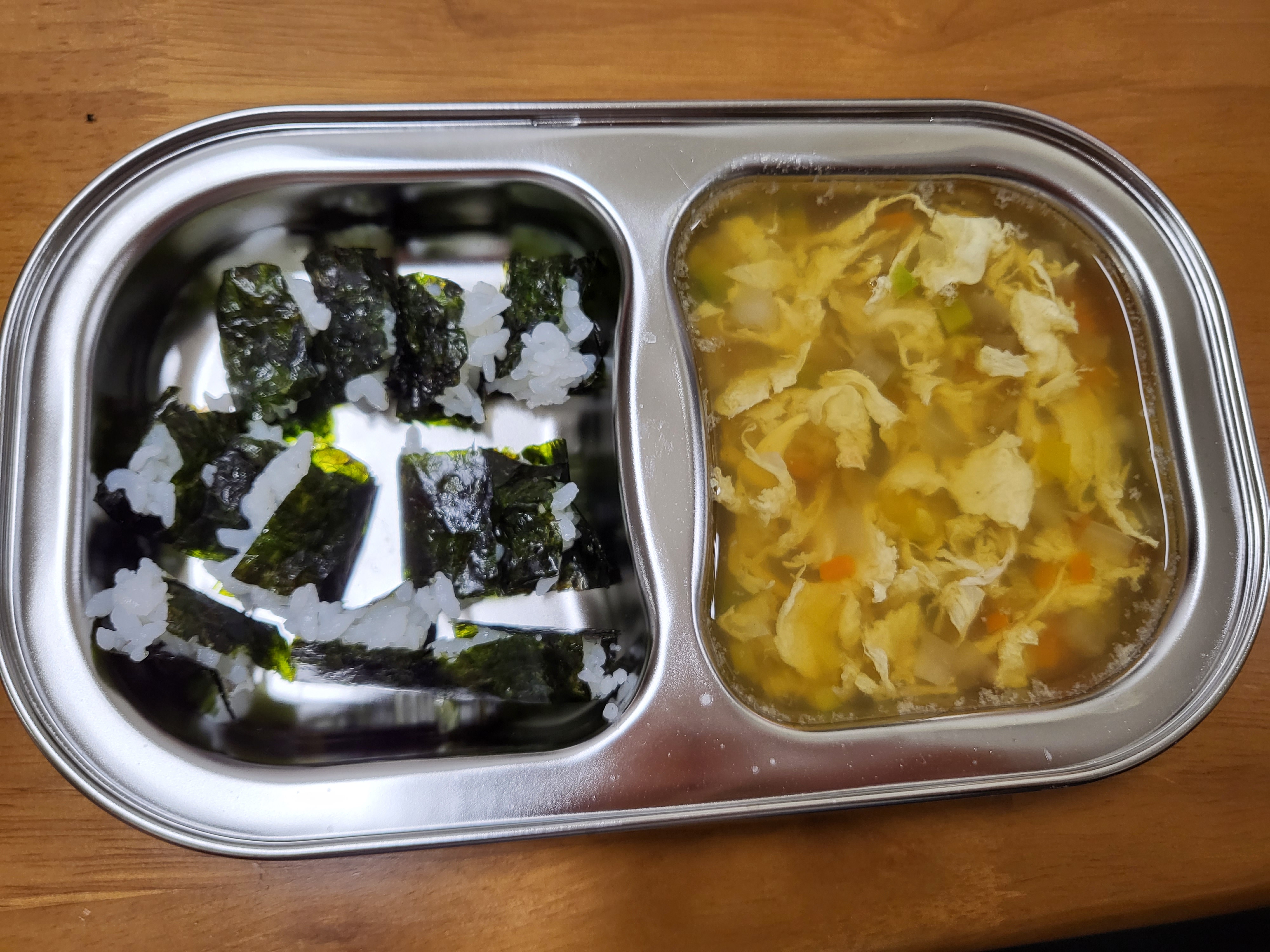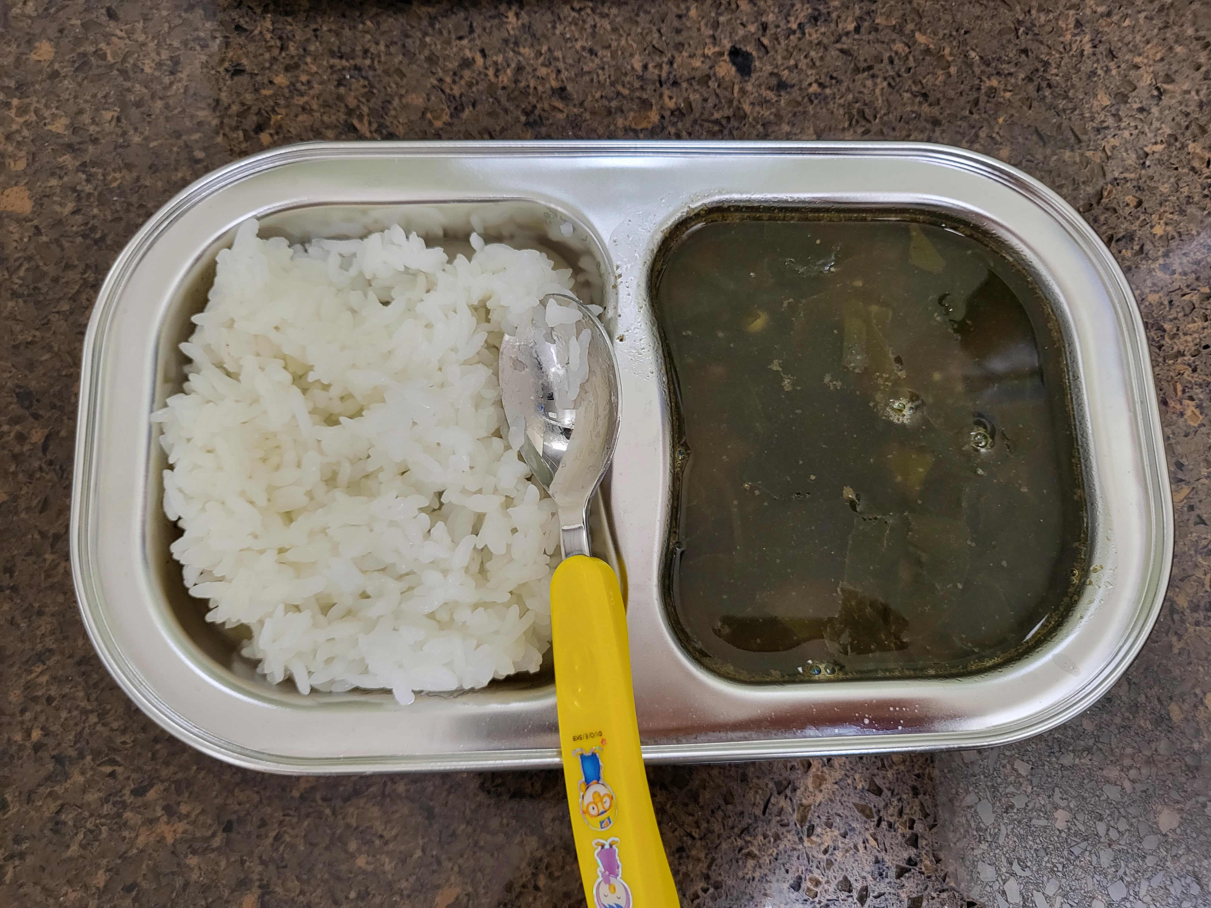유아식이 시작되면서 처음에는 아래 사진처럼 스텐 식판에 간단하게 밥+국 해서 밥을 먹이기 시작했는데요.
