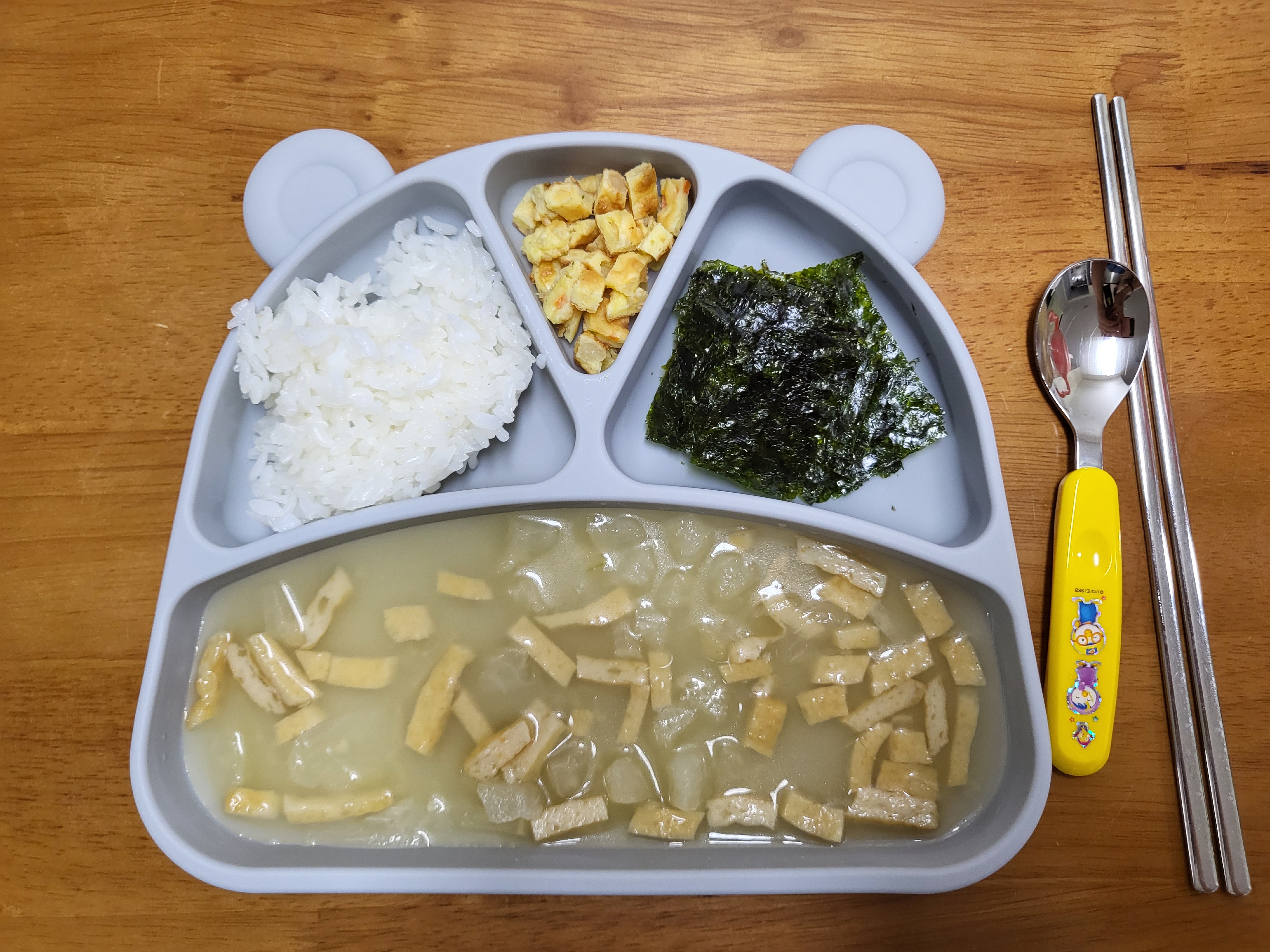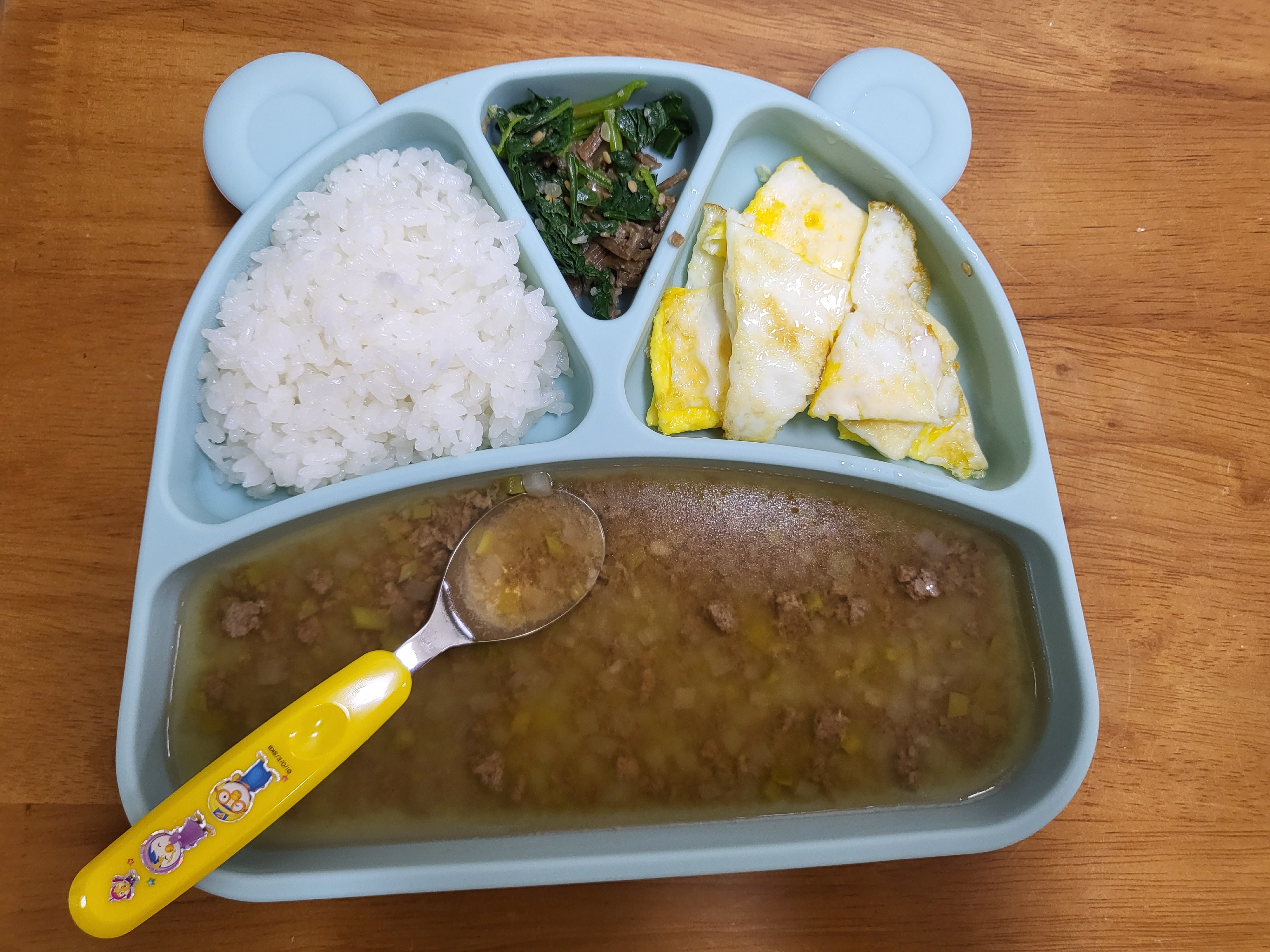 밥 국 반찬까지 넉넉히 담아서 국에 밥을 말아줘도 되고, 밥위에 반찬 올려서 밥반찬을 먹여도 되고 너무 편하더라고요!