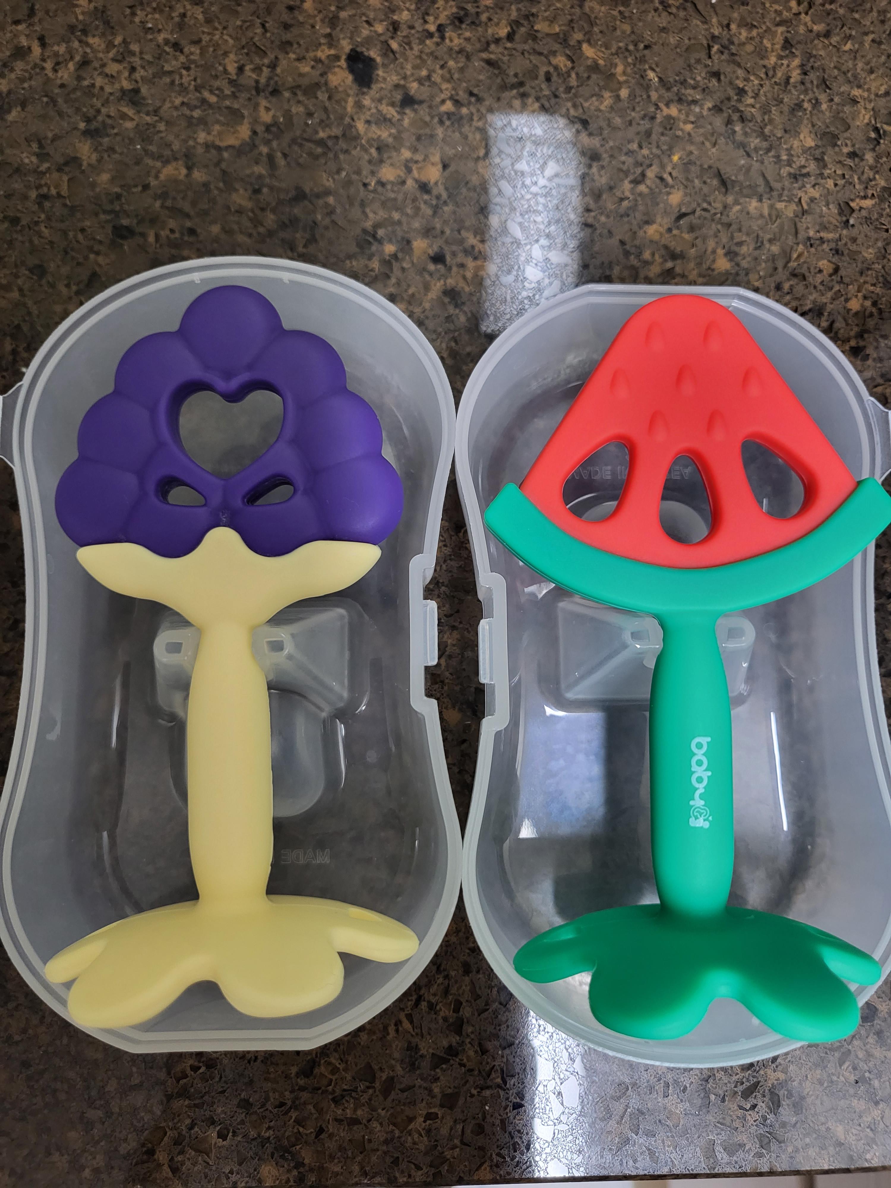 아기마다 다르겠지만, 일단 포도 모양과 수박 모양은 아기가 입에 마구잡이로 넣다가 목에 너무 깊게 넣어서 역류하는 경우가 종종 있었어요. (우리 아이는 먹는걸 토하는 경우가 아픈게 아닌이상 없었어요!)