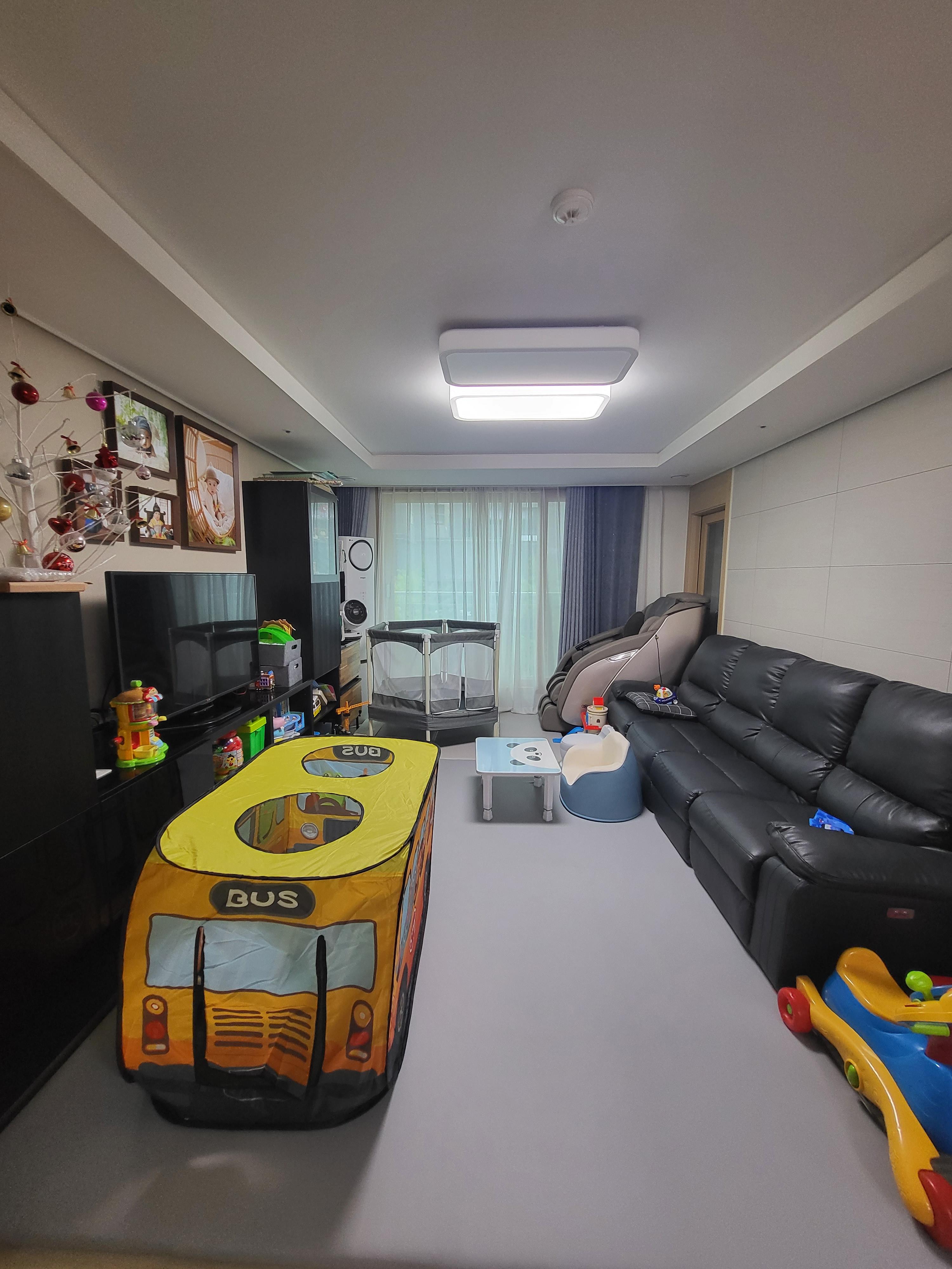 저는 거실은 아이 놀이방 용도로 쓰는지라, 트램폴린, 놀이텐트, 아이 장난감, 물건 전부 손닿는 거실에 두거든요.