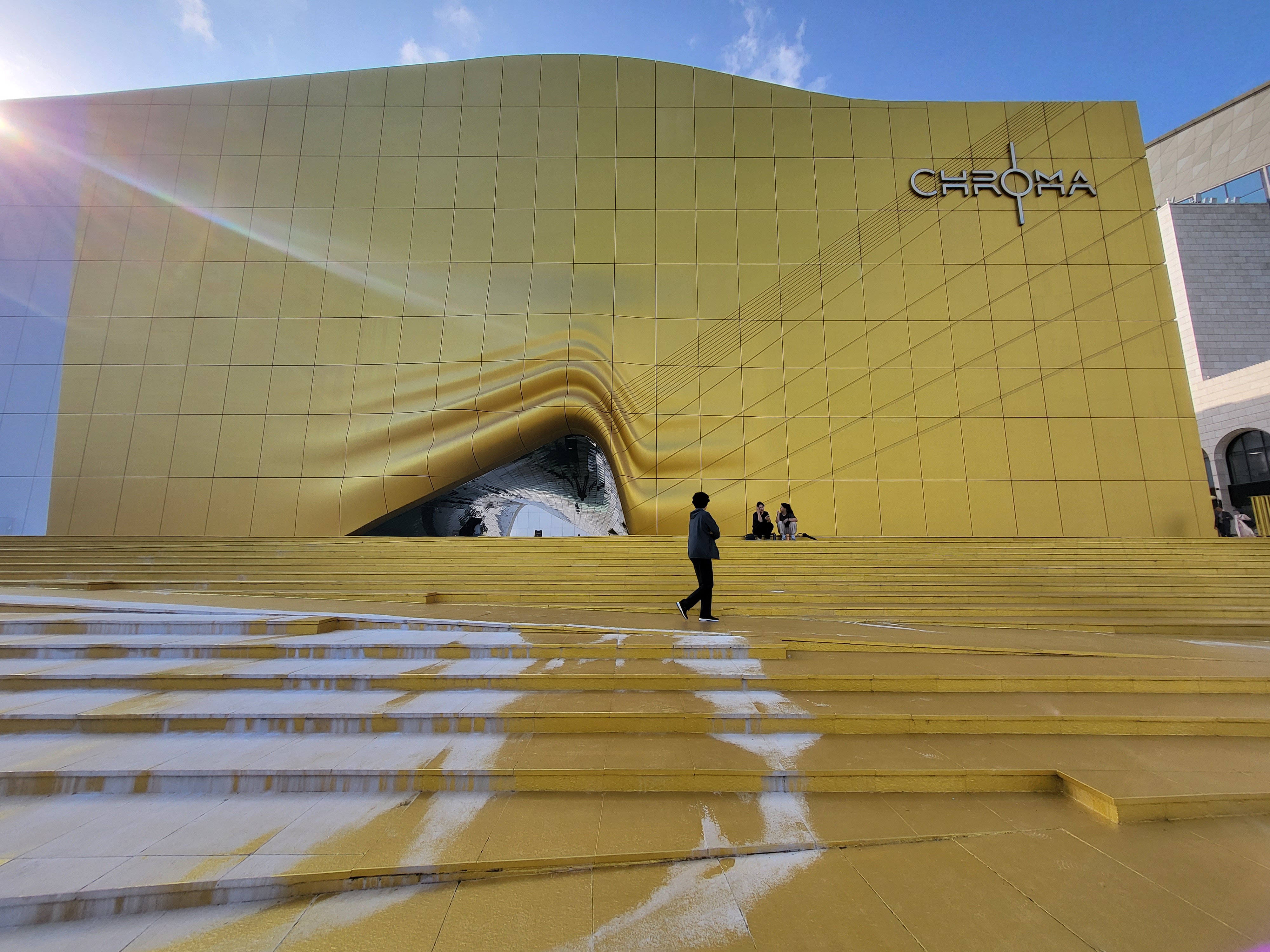 파라다이스시티 건물로 다시 들어오니 광장에 기와집과 담장을 꾸며놓고 그 안에서 풍물 놀이도 하더라고요.