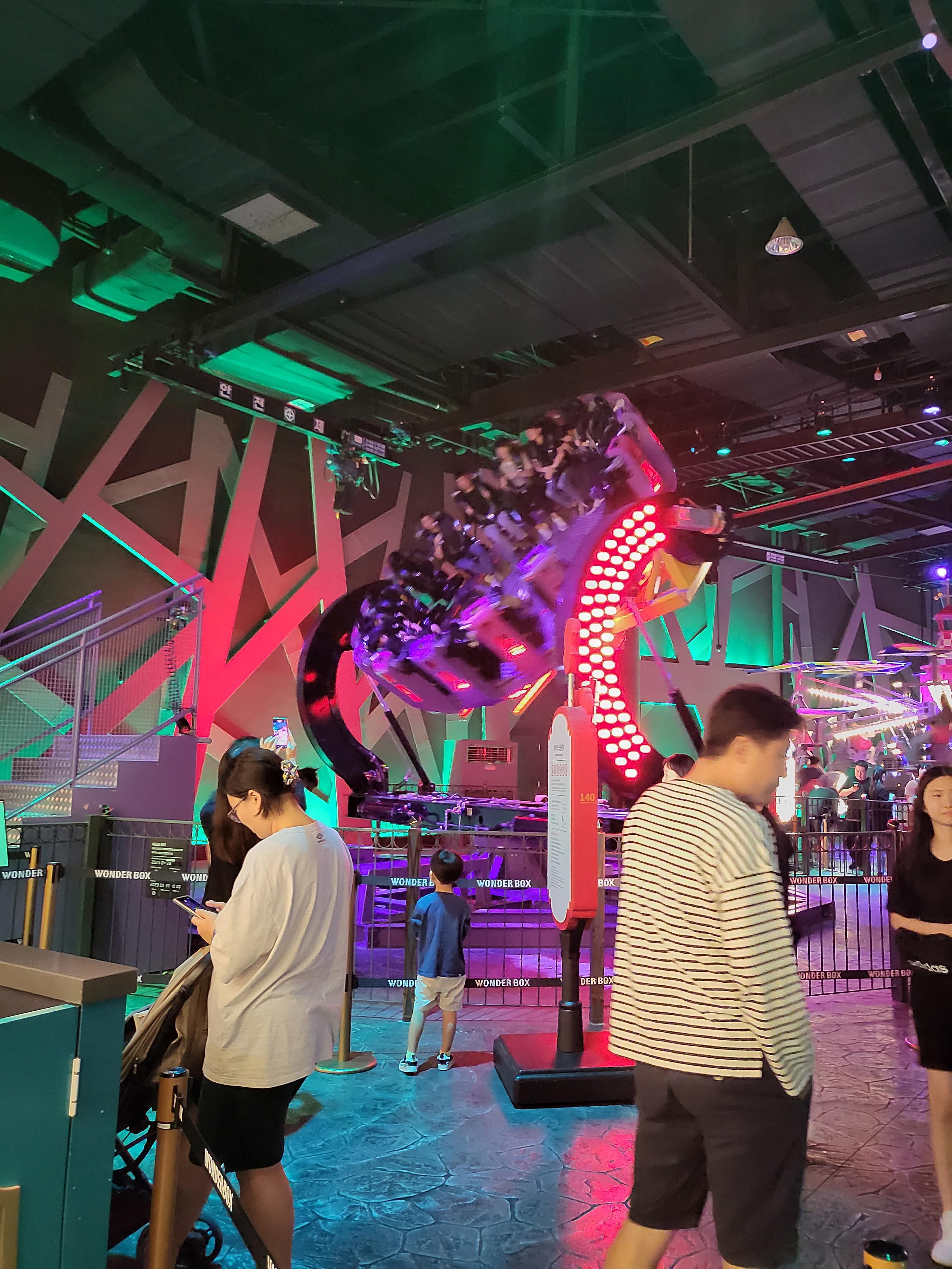 놀이기구 시설에만 반짝이는 불들이 들어와 있어서 내부가 굉장히 어지럽고 정신없게 느껴지더라고요.