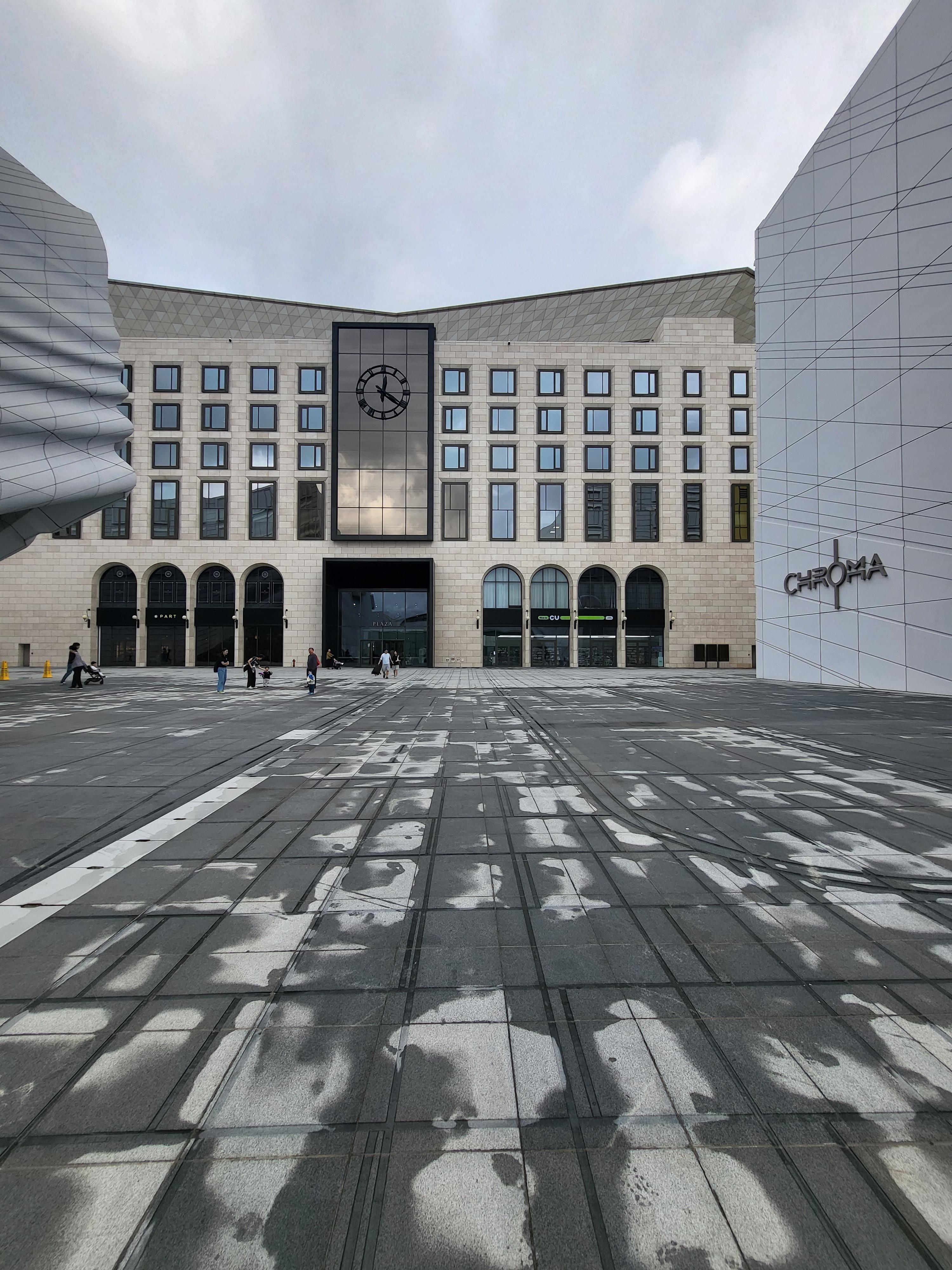 건물을 구겨놓은것 같은 외형의 노란색 건물 통로를 지나면 시계가 있는 본 건물이 나오는데,